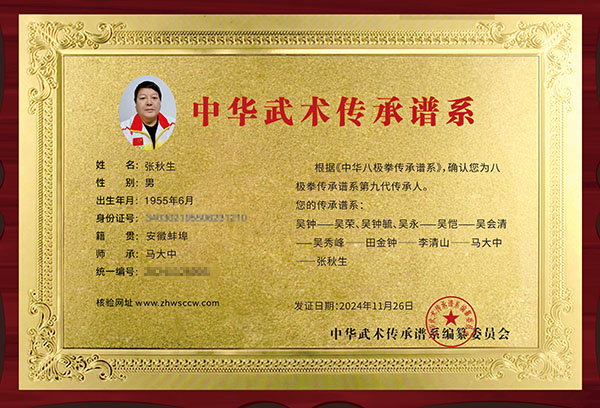 张秋生,1955出生,是八极拳第九代传承人,自动喜爱武术。1985年拜高拱辰老师学习形意拳,老师去世后于2006年10月跟随田氏八极拳马大中老师专心学习八极拳至今。