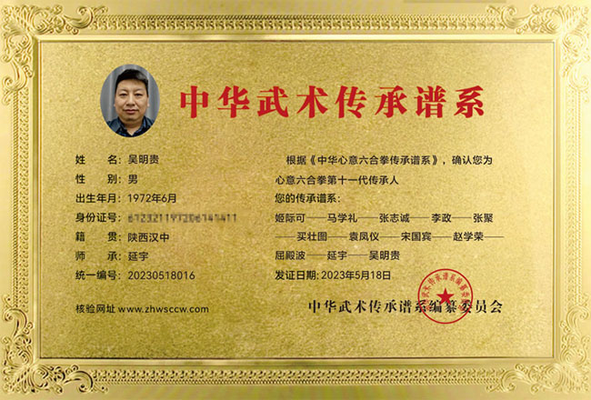吴明贵传承证书