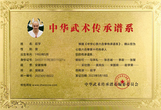 延宇,1983年生,安徽蚌埠人,心意草堂主理人,心意拳第十代传承人,武术协会理事成员,荣获优秀教练员荣誉称号。