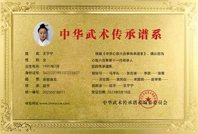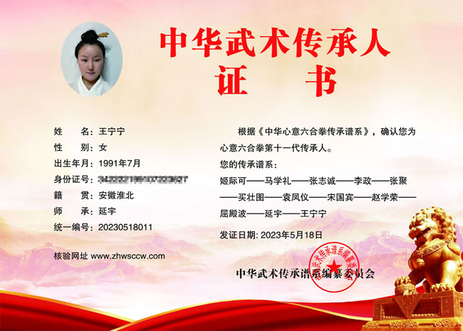 王宁宁传承证书