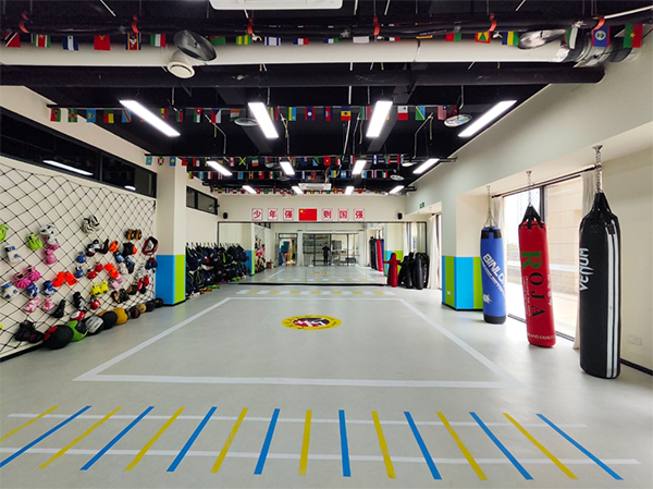 1000 ㎡ 训练空间:擂台区、沙袋区、体能区、更衣淋浴间一应俱全。