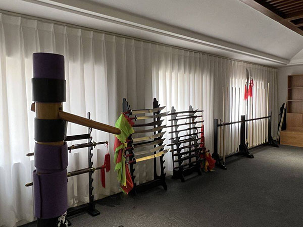功能区:场地分为陈氏太极拳训练区、双人推手区、双人粘枪区和休息区,每个区域都配备了专业的训练器材和设备。