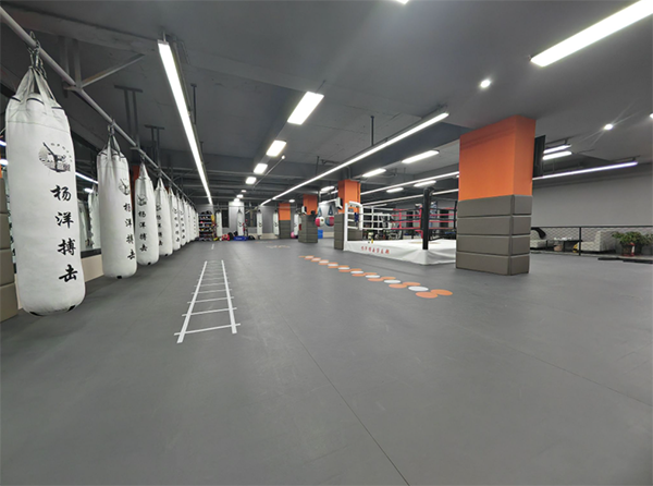 功能区:场地分为散打训练区、搏击训练区、八段锦训练区、擂台搏击区、沙袋分部训练区、力量器械训练区、跑步有氧训练区等。