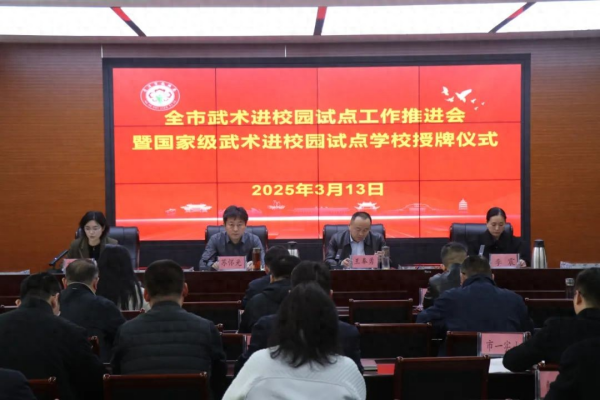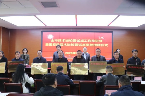 2024年在国家体育总局武术运动管理中心、山东省武术院武术进校园试点学校工作中,我市共有9所学校被评定为国家级武术进校园试点单位,会上,为这9所学校发放了牌匾。