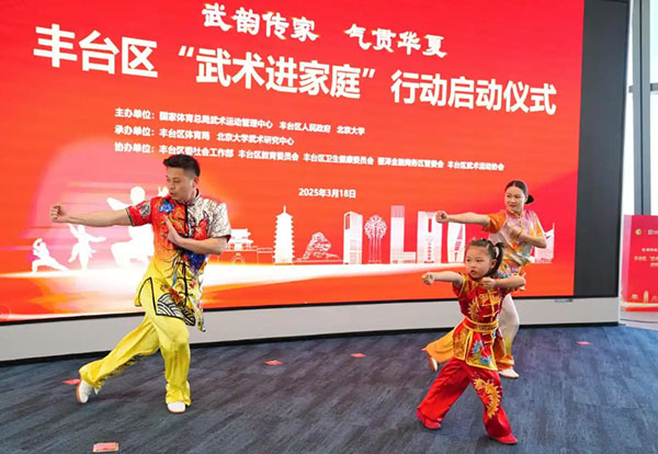 丰台区体育局局长李伟介绍,接下来的一年里,丰台区“武术进家庭”行动将举行武术家庭、武术社区征集,武术专家走访和家庭武术文化节三项活动,开展“健康丰台,家庭行动”计划,实施武术家庭人才培育工程,建立武术人体质健康管理数据库,还将建立“武术进家庭”社会实践基地、形成“武术进家庭”年度报告、编辑“武术进家庭”案例集,提炼可复制可推广的“丰台经验”,全方位展现武术文化在家庭生活中的生动实践。