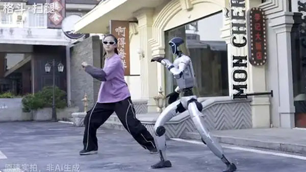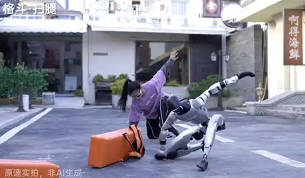 此外,G1在视频中还与真人共同表演了武术,并在真人的扔包、踢腿等干扰动作下展现出了抗摔打稳定性。