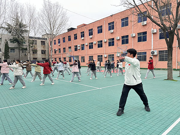 在传承中华武术的道路上,少室山武术学校始终砥砺前行。2025年2月20日,我们的教练团队再次走进市直三初中,为他们带来了武术教学,让武术的种子在市直三初中校园中继续生根发芽。