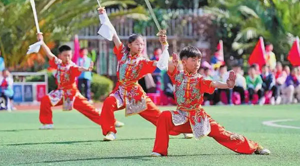 目前,我省参与校园武术运动的学生超过19.2万人,全省现有武术教师人数超过250人。云南省武术协会副主席、云南师范大学教授熊亚兵介绍,全省已构建起分学段(大学、中小学)、跨区域(滇中、滇东、滇南、滇西)的学生校园武术套路、散打分站竞赛体系。伴随着武术进校园的展开,云南省多所学校已将武术列入校本课程,在青少年中开展武德、武艺、武礼教育,积极营造校园武术文化氛围,丰富学生课余生活,提高身体素质。