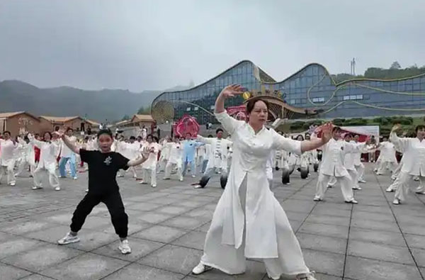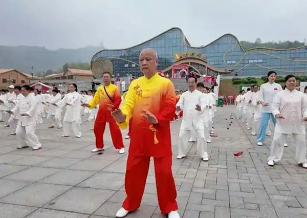 活动现场,参演者以竹海游客中心为圆心展开队列,起势、野马分鬃、白鹤亮翅等招式与竹林清风同频共振。随后,各地队伍各展所长,益阳资阳区马良等团队带来86人集体武术拍打操,气势恢宏;湘潭花石镇17人演绎新编杨式十三式,招式行云流水;益阳临风百人团队的第一套功夫扇刚柔并济,掀起现场高潮,桃江本土队伍武当队的武当拳刚健迅猛,体育场队的太极刀技法精湛,健身气功队的《马王堆导引术》尽显传统养生智慧,引得不少游客驻足观赏。