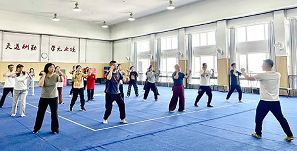 每天久坐腰酸背痛,想摆脱“肌无力”却不知如何缓解?武侠剧中的招式耍起来超酷,想要学习又找不到渠道?这或许是当下许多职工面临的困扰。近日,北京经开区总工会职工武术运动协会(以下简称“职工武协”)于北京市杂技学校专业训练室开展了2025年度首场公益武术课程,共40余名职工参与。