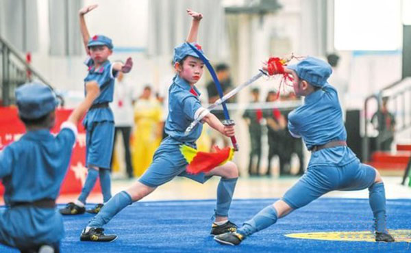 旋转起身、凌空翻腾……现场,参赛选手们身姿矫健,以饱满的状态展示武术水平和少年风采。据了解,此次比赛为期两天,共吸引全市45所学校、609名热爱武术的中小学生报名参赛。比赛共设置展演项目、集体项目、武术操、武术基本功四类比赛项目,为参赛学生提供展示武艺的机会。
