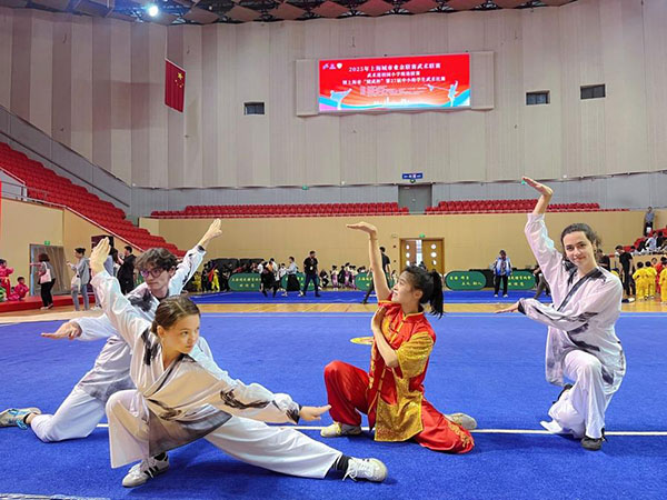在开幕式上,还首次邀请外籍武术爱好者参与,来自上外、同济、上体的多名留学生现场展示了学习成果。同济大学法国留学生爱玛是体育爱好者,今年作为交换学生将在上海待五个月。在学校武术俱乐部,她第一次接触到武术,并跟着教练学习精武经典拳术迷踪拳、蛇拳等。在展演前,三个不同学校的留学生利用周末时间,相约一起练习蛇拳,最终在开幕式上有了完美呈现。爱玛说,练习武术提升了自己的柔韧性、协调性,有助于其他运动的发展。更重要的是,这是了解中国文化的途径,能够与中国人交朋友。开幕式当天,她还邀请了七八名留学生同学一起前来。“大家看到老老少少都在练武术,触动很大,非常感动。”