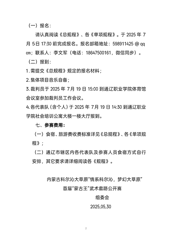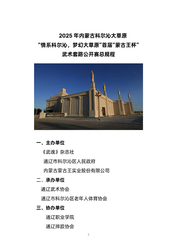 “情系科尔沁,梦幻大草原“首届“蒙古王杯”武术套路公开赛的通知
