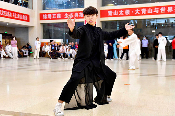 6月12日,来自山东五莲的选手时培春在太极拳套路比赛中。