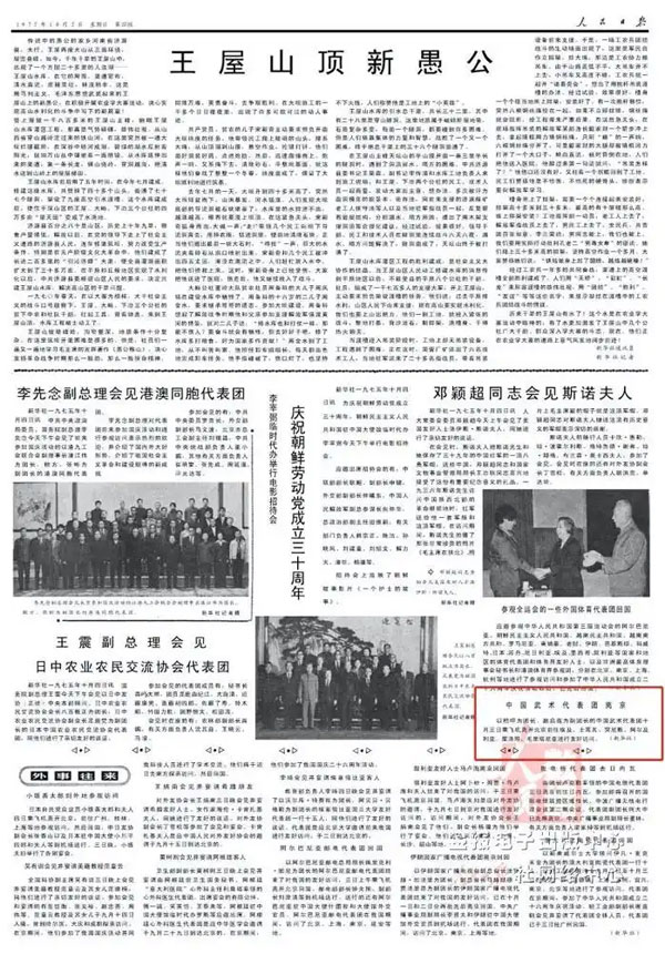 《人民日报》1975年10月5日:中国武术代表团十月三日乘飞机离开北京前往埃及、土耳其、突尼斯、阿尔及利亚、摩洛哥、毛里塔尼亚进行友好访问。