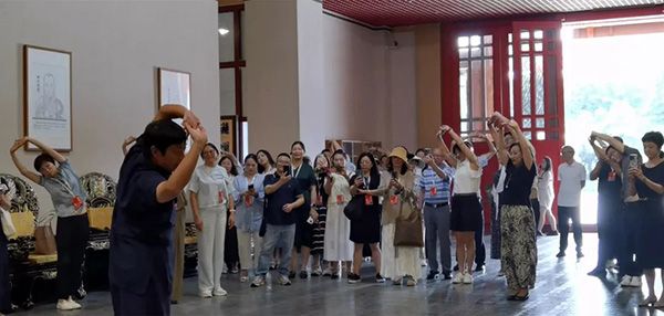 最后王超老师亲自示范教学,以通俗易懂的方式带领各位嘉宾体验峨眉伸展功第四式“摇头摆尾式”。