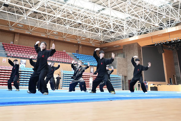 “动如崩弓,发若炸雷。”5月13日,在孟村八极拳国际培训中心,一群学员正在习练八极拳。