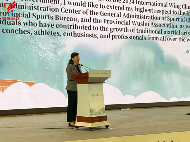 文曦为活动致欢迎辞对大赛的举办表示祝贺,她表示,佛山作为中国武术协会授予的全国唯一的“武术之城”,正激活“功夫文化”在内的“十大传统文化”。目前全市有超1万名武术从业者,建有近300家武馆,带动了10万多名群众参与武术锻炼。经过多年的传播推广,佛山功夫已在海外176个国家和地区,约有6000多家拳馆1000多万人弘扬和传承中华武术精神。