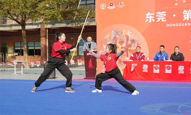 1月18日上午,广东省东莞市南城阳光第七小学活力绽放、激情飞扬,东莞·第二届“阳光杯”武术比赛在这里举行。来自11所中小学、机构的近200名武林“小高手”同台比武,大显身手。
