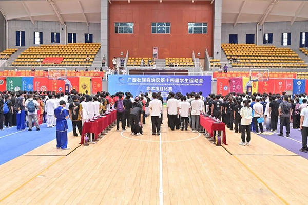 7月9日上午,广西壮族自治区第十四届学生运动会武术项目比赛在广西民族大学思源湖校区体育馆圆满闭幕。本次比赛为期4天,吸引了来自全区的51支代表队、401名武术健儿同台竞技。