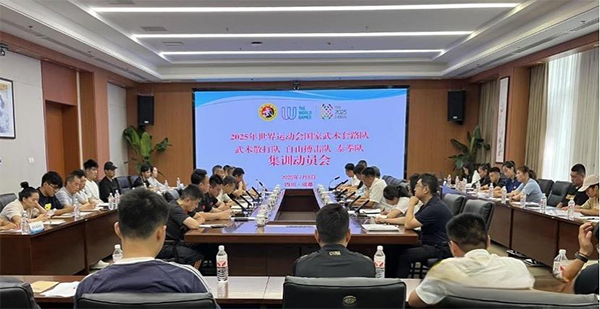 动员会上,国家体育总局武术运动管理中心副主任申振刚强调,一是要以文化为根,筑牢使命之基,充分认识圆满完成世运会参赛任务的重要现实意义;二是要以目标为纲,明确奋斗方向,努力实现运动成绩与精神文明双丰收,赛出风格、赛出水平、争金夺银、为国争光;三是要以行动为要,强化使命担当,锻造胜利之师,严格队伍管理,坚决落实赛风赛纪和反兴奋剂各项要求,确保兴奋剂问题“零出现”。