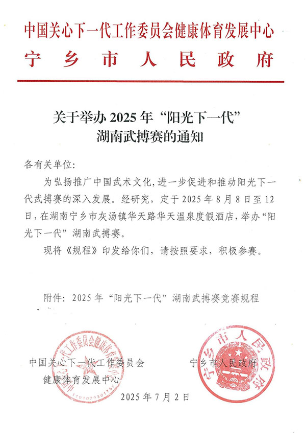 2025 年“阳光下一代”湖南武搏赛(竞赛规程)