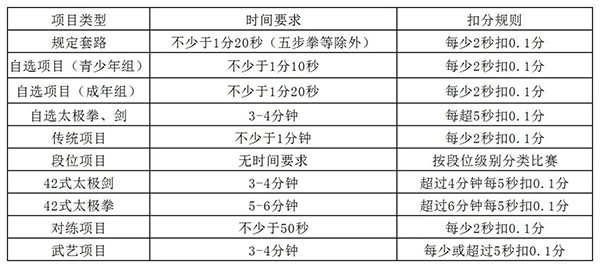 3. 自选套路比赛中主要动作内容和一般动作内容不作规定要求。