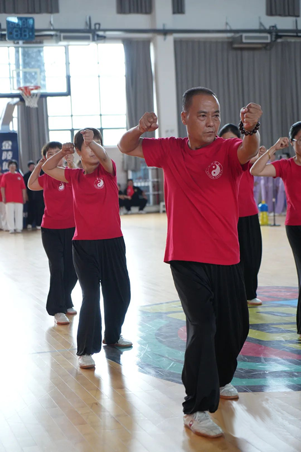 赛场上,一队队选手依次登场,围绕“集体上虞特色形意拳36式”项目展开较量。他们目光如炬,起势沉稳如山,动则迅疾如风。崩拳刚猛,似雷霆破空;钻拳灵动,若流水穿石。脚下趟泥步稳健扎实,身形辗转间虎虎生风,传统武术的魅力在此刻尽情绽放。