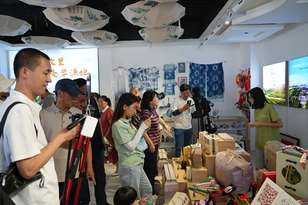在展销区,艾条、面粉、土蜂蜜、小杂粮等农特产品以及蓝染、泥塑、麦秆画等非遗工艺品琳琅满目。工作人员热情洋溢地向游客介绍各类康养产品的制作工艺和独特功效,现场气氛热烈。