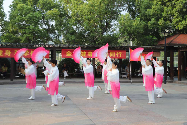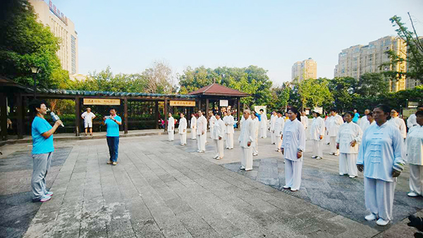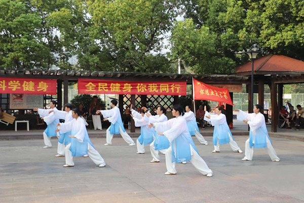 参演人员冒高温、战酷暑,挥汗如雨,但个个精神抖擞,一招一式张弛有度、行云流水,充分展示出表演者的刚柔之美、神韵之美、和谐之美。展演过程中,大家依次展示了下面节目: