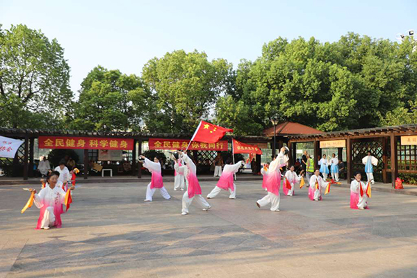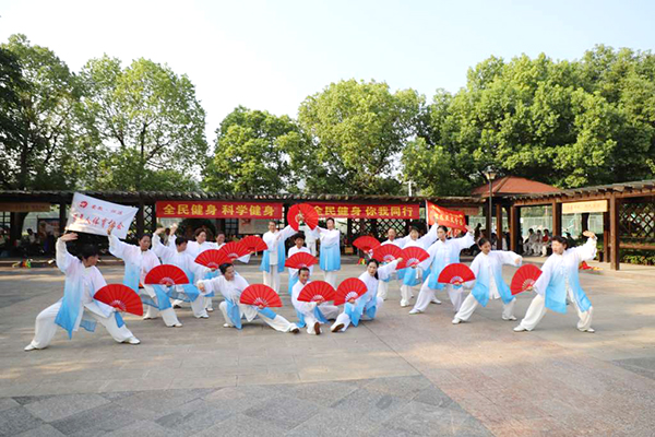 怀远县举行“全民健身 科学健身你我同行”武术展演进公园活动