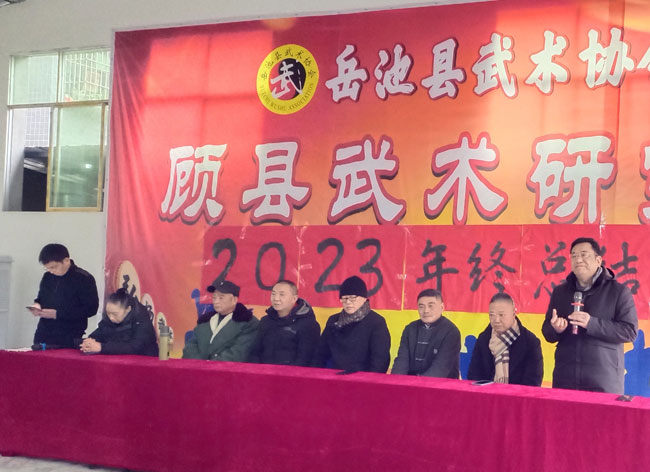 1月26日,四川广安市岳池县顾县武术研究社年会活动在顾县镇隆重举行,来自广安、岳池等地的特邀嘉宾及武术研究社会员近60人参加。顾县武术研究社社长杨青松作2023年工作报告。活动由顾县武术研究社常务副社长吴立军主持。