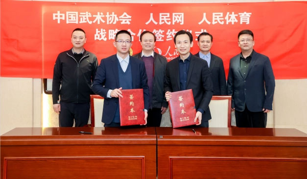12月30日,中国武术协会与人民网人民体育战略合作协议签署暨人民兵道工作委员会揭牌仪式,在中国武术协会举行。国家体育总局武术运动管理中心主任、党委书记陈恩堂、中心副主任陈冲、武术搏击部主任张雷,人民体育董事长朱凯、首席运营官林峰、融合产业中心主任潘浩等出席仪式。