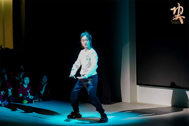 踏着充满节奏感的街舞舞步,穿着印有金色“功夫”字样红色上衣的孩子们粉墨登场。一番热血澎湃的唱跳表演完成后,部分孩子换上传统武术比赛服,上演了集体拳术(长拳)、太极拳、刀术和剑术表演。当武术的刚劲有力遇见音乐剧的灵动优美,这群6—14岁青少年的自信身姿,是他们过去两周下足功夫的明证。