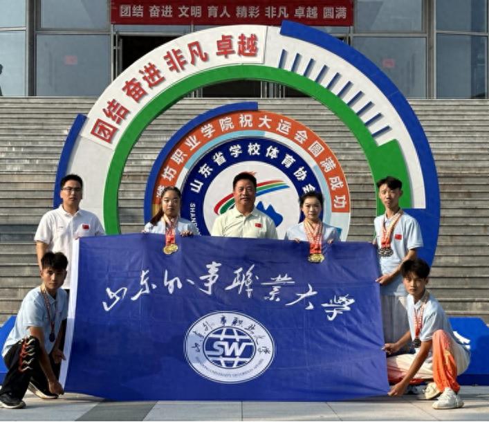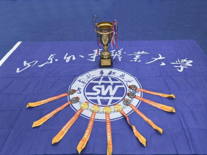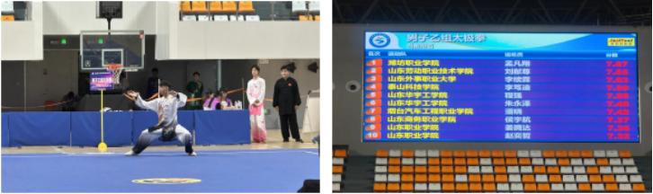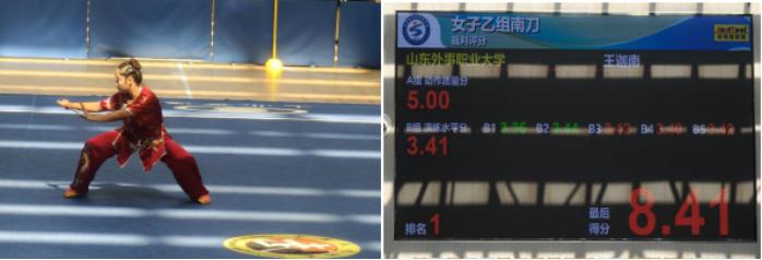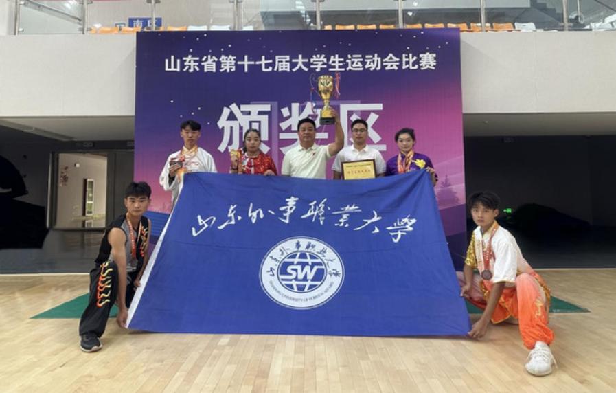在刚刚闭幕的山东省第十七届大学生运动会武术比赛中,山东外事职业大学学生经过四天的激烈角逐,表现出色,喜获4金5铜、团体乙组总分第二名的优异成绩及“体育道德风尚奖”。这是学校武术竞技史上的一次重大突破,展示了学校武术教学和训练竞技的高水平,以及良好的精神风貌。
