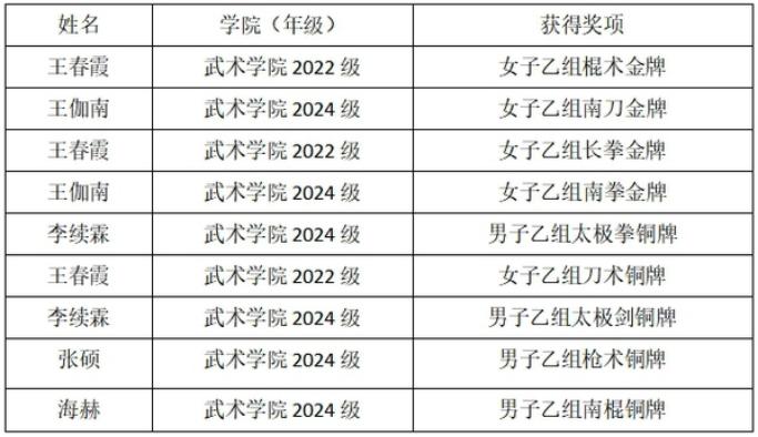 学校对于此次赛事高度重视,竞赛规程发布以后,学校迅速组建了以学生处处长邹丽君、体育部主任徐元君为领队,武术学院院长王凤勇、体育部副主任孙乐忠为教练,8名学生为参赛队员的备战比赛团队。