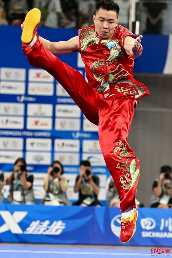 7月30日,成都第31届世界大学生夏季运动会武术套路项目最后八场比赛继续在城北体育馆进行,中国体育代表团参加了男子南棍、女子南拳、女子太极剑、男子刀术等四项比赛,取得了3金1铜。中国大学生武术队以7金1铜的成绩结束了武术套路项目的全部比赛。