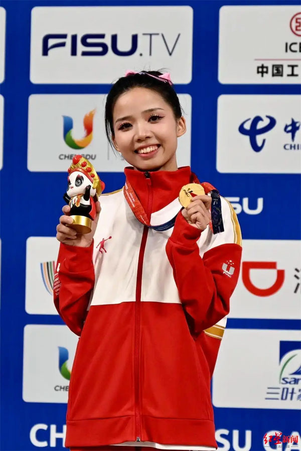 在今日上午进行的最后一个武术套路项目女子太极剑比赛中,中国队选手陈小丽第一个出场。她以一套行云流水、清新脱俗的剑法征服了全场观众,裁判更是给出了9.746的最高分,收获了她个人在本次成都大运会上第二金。