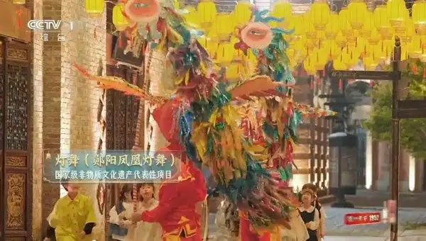 节目开始,郧阳凤凰灯舞亮相其中。郧阳凤凰灯舞是流传于郧阳区的一种传统花灯舞蹈形式,民间亦称“玩凤凰”。由一人掌凤头,一人掌凤身,模仿传说中的凤凰各种形态。该项目传承人史清是目前十堰唯一一名国家级非遗项目代表性传承人。