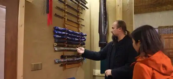 杰克向记者展示了他家的茶室,茶室中还放置着笛子、洞箫、古琴,他练习洞箫已有六年时间,去年他还编撰出版了一本英文版的洞箫学习教程书籍。