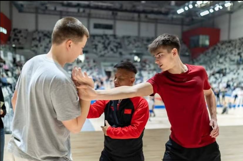 此次武术传播活动备受欧洲民众关注,偌大的体育馆内人头攒动,座无虚席。众多青少年在家长的陪伴下早早来到现场,他们对来自东方的神秘武术充满了向往。考虑到青少年的特点,王会长精心设计了简单易学又充满趣味的武术教学内容。从基本的踢腿、格挡,到寓意深刻的抱拳礼,孩子们学得全神贯注,稚嫩的脸庞上洋溢着兴奋与自豪。在宽阔的体育馆内,整齐排列的孩子们跟随王会长的口令,认真模仿每一个动作,宛如一群朝气蓬勃的小武者,展现出中华武术在海外传承的无限潜力与希望。