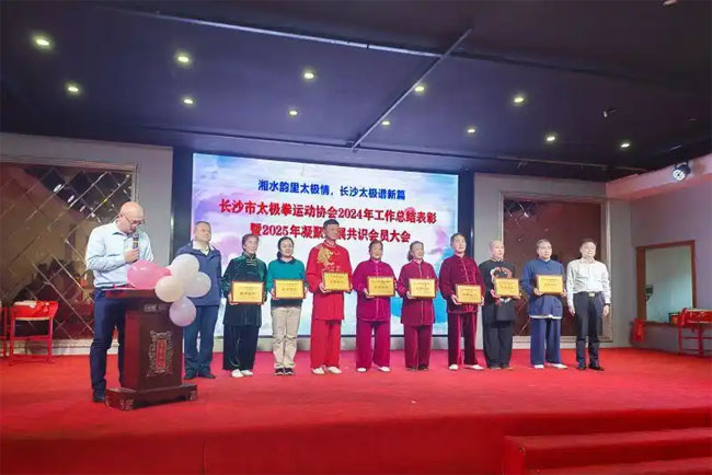 年会上,协会党支部书记邹泽群宣读《关于表彰2024年度长沙市太极拳运动协会先进个人和先进集体的决定》,对获奖的129位先进个人和27个先进集体进行了颁奖。获奖者们纷纷表示,将珍惜荣誉,再接再厉,为太极拳运动的推广和普及贡献自己的力量。长沙市体育局相关负责人希望协会擦亮文化品牌、强化服务意识,继续发挥桥梁纽带作用,团结带领广大太极拳爱好者,推动长沙市体育和全民健身事业高质量发展。