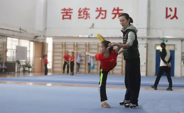 小万的两个女儿都是青岛市的武术、散打冠军,其中小女儿王忆楚还取得过山东省的体操冠军。如今改了项目从事武术套路,由于之前姐妹俩有过体育功底,领悟动作快,很快就被青岛市武术套路女队主教练陈静注意到她们运动的天赋,经过悉心指导后,已经是重点培养苗子,有望代表青岛参加明年在临沂举办的省运会的武术套路比赛。