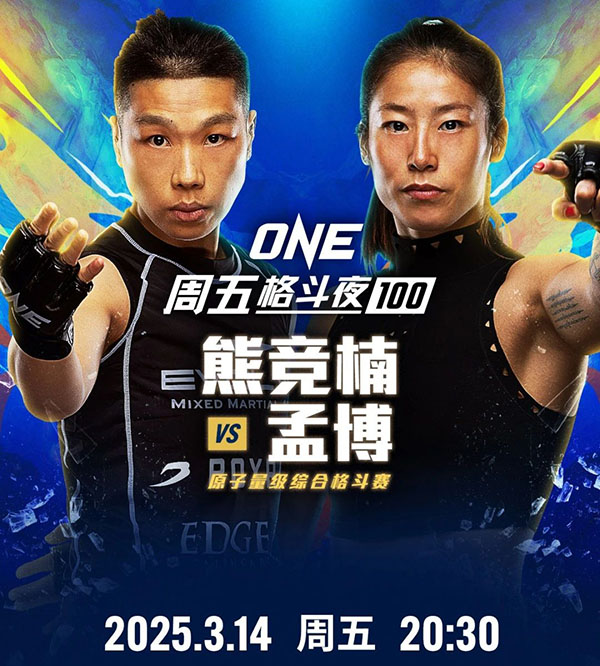 尽管在职业生涯中也曾遭遇过挫折和失败,但孟博从未放弃过对胜利的渴望和对自我的超越。她不断努力提升自己的技术和实力,向着更高的目标迈进。如今,面对女子草量级世界冠军熊竞楠,孟博更是充满了信心和决心。她表示,自己将全力以赴,争取在这场中国德比中击败熊竞楠,彰显自己的争冠实力。中国德比:点燃仑披尼竞技场的热情这场由熊竞楠对阵孟博的女子原子量级综合格斗赛,不仅是一场技术和实力的较量,更是一场荣誉和尊严的争夺。作为中国女子综合格斗的两位杰出代表,熊竞楠和孟博的对决无疑将吸引无数中国拳迷的关注和期待。在仑披尼竞技场这个充满传奇色彩的地方,熊竞楠和孟博将用她们的汗水和热血,为拳迷们奉献一场精彩绝伦的比赛。无论最终的结果如何,这场中国德比都将成为女子格斗历史上的经典之战,激励更多的人们为梦想和荣誉而战。我们期待着3月14日ONE周五格斗夜100的到来,期待着这场富有史诗感的中国德比能够点燃仑披尼竞技场的热情,让世界再次见证中国力量的崛起和辉煌。
