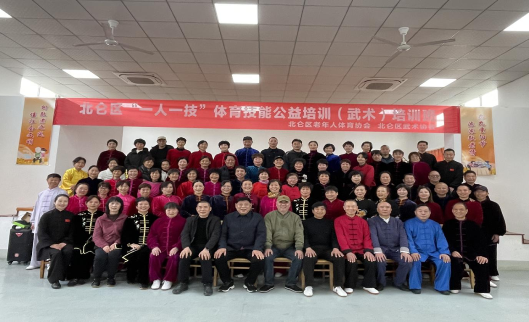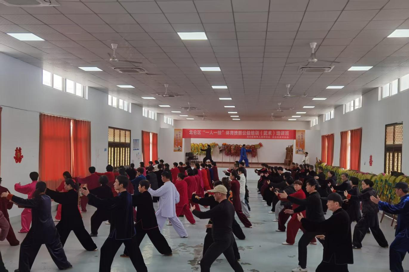 3月9日,北仑区“一人一技”体育技能公益培训(武术)培训班在北仑星阳文化礼堂举行。本次活动由北仑区老年人体育协会和北仑区武术协会联合举办,旨在推广全民健身,传承中华武术文化,吸引了各街道、行业(系统)的近百名武术太极拳爱好者积极参与。北仑区老体协主席黄海伟,北仑区武术协会常务副会长兼秘书长赵彩萍等出席活动。