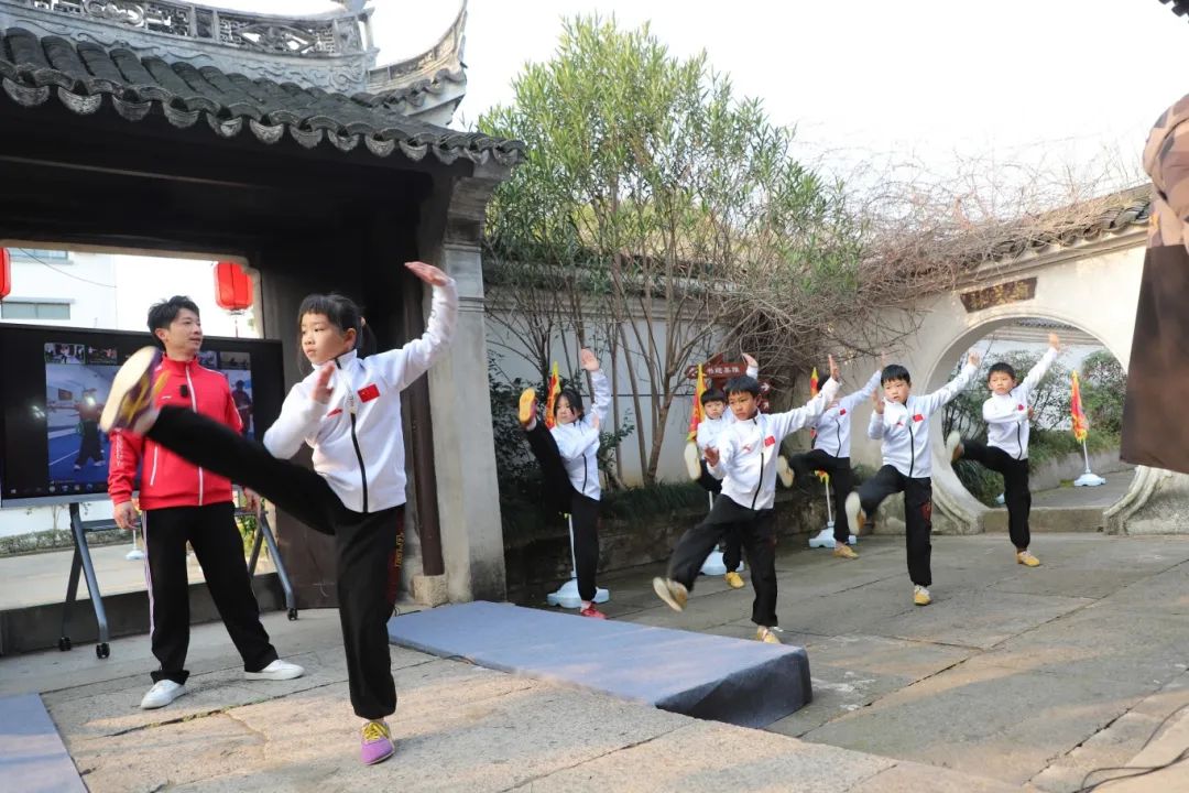 现场,随着一声声口令下达,少年们的动作行云流水、刚劲有力,一招一式都彰显着中华武术的神韵。正踢腿、侧踢腿、单拍脚、后扫腿、马步、五步拳各有特色,拳掌勾手型变化多端,步法灵动,手法刚柔并济。