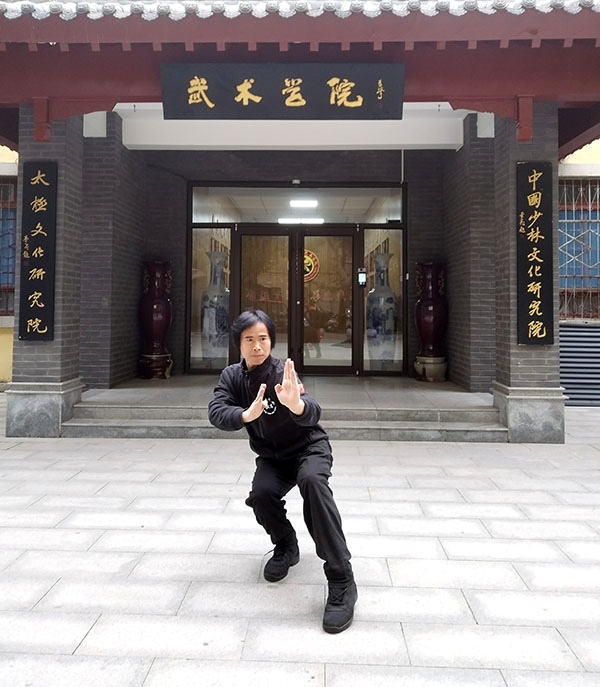 韦建举:(法号:释延贵)男,1970年出生,自幼酷爱武术,八岁跟随郑州武协领导白岚臣老师学习初级长拳。1986年在中岳嵩山少林武术学院,跟随刘保安,刁山多大师专修少林拳。2006年,跟随刘老师学习陈氏太极拳。2012年至今跟随武林泰斗武林百杰马春喜恩师学习扬氏、陈氏太极拳、长拳和少林拳,以及各种器械。