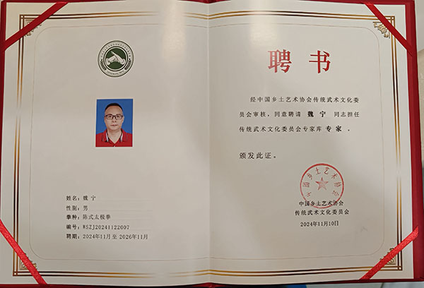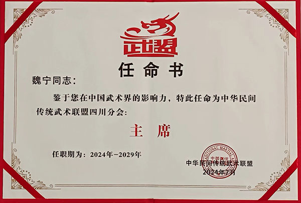 魏宁,四川成都人,中共党员,师从武林泰斗张。国际武术协会副主席;中国乡土艺术协会传统武术文化委员会副主任;中国武术名家协会常务副会长;中华传统武术联盟副主席、中华武盟四川分会主席;世界非物质文化遗产研究院副院长、特聘院士;国际武术九段、国际级武术教练、国际级武术裁判、太极拳高级教练、2024中泰武术交流大会组委会执行副主席、执行总裁判长,2025北京第十四届“张三丰”杯武术养生交流大会组委会执行副主席、执行总裁判长。