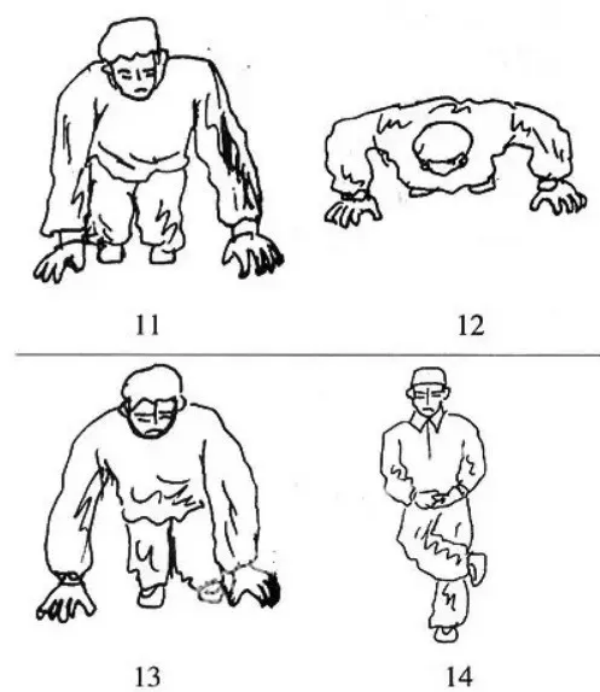 按上述连续动作图解说明,开始做10次,练习一段时间后,逐渐增加次数,百日内达到50次黄龙探爪动作为佳。