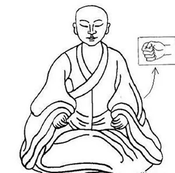 原注:盘腿而坐,紧闭两目,冥忘心中杂念。凡坐要竖起脊柱,腰不可软懈,身不可倚靠。握固者,握手牢固,可以闭关祛邪也。静思者,静心思虑而存神也(图1)。